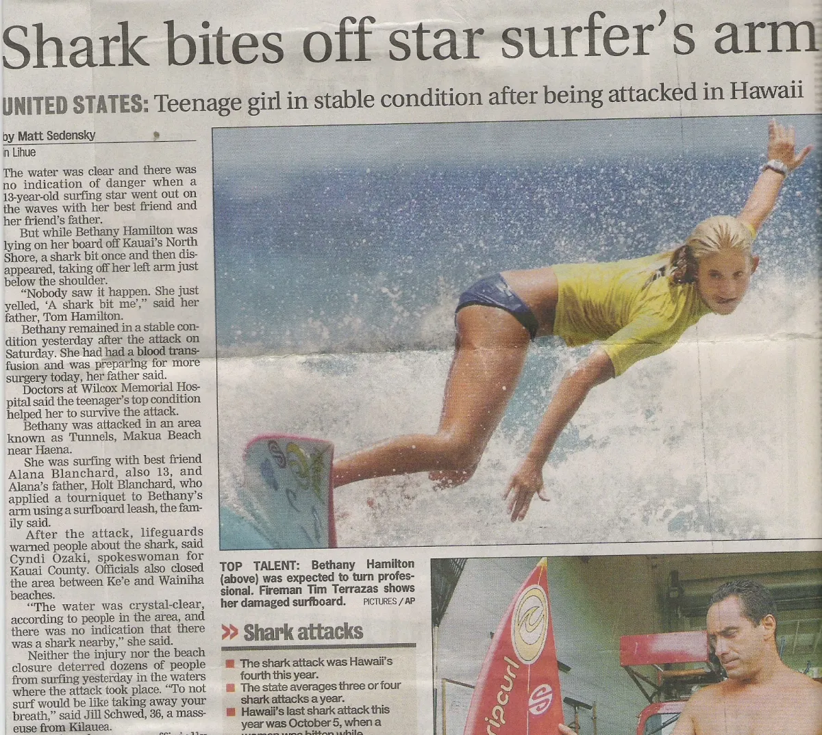 My comeback story received lots of publicity this year. I was featured on many news outlets and media interviews and received the MTV “Teen Choice Award” for courage. My bestselling autobiography Soul Surfer was also released!