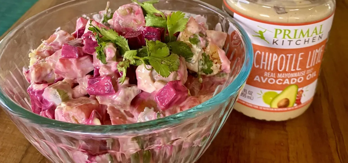 This recipe is my favorite way to make potato salad because it includes two other foods I really enjoy – beets and Primal Kitchen Chipotle Lime Mayo.