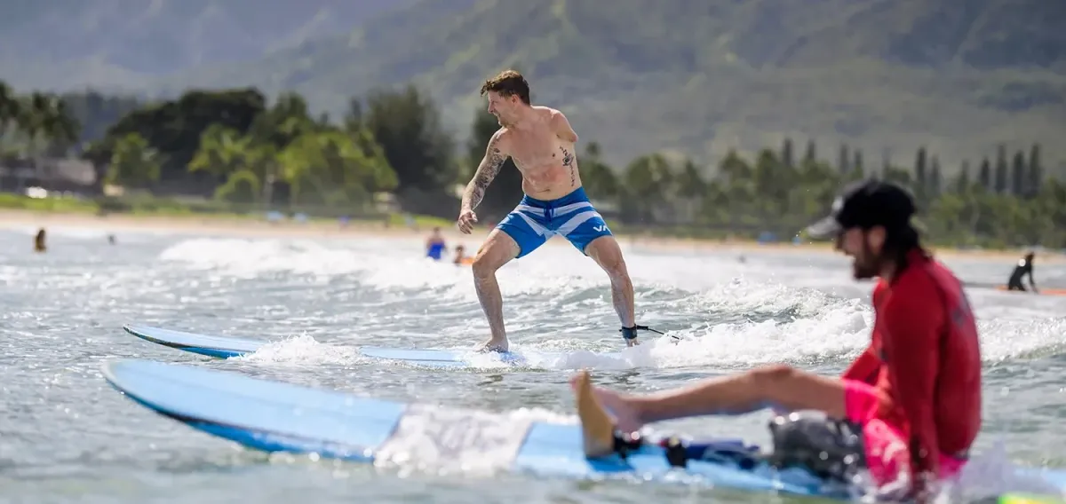 Logan Aldridge and I actually met back in 2005 when we were kids. Logan and his family came out to Kauai and met me and my family. Logan comes from a water sport family and they took me wakeboarding for the first time with one arm.